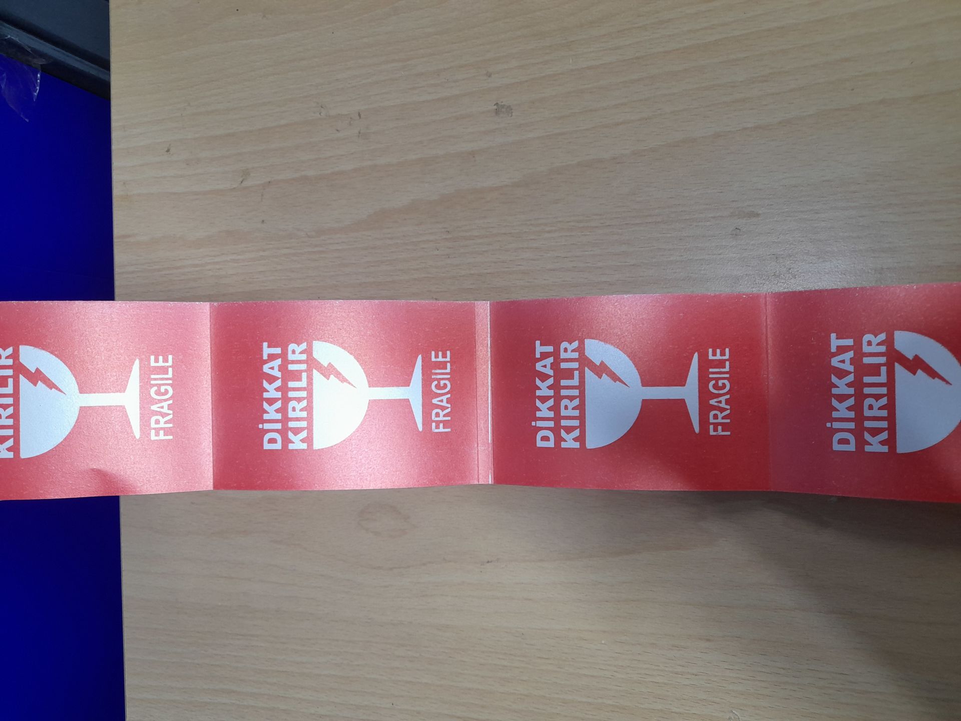 110 mm x 75 mm Kuşe Dikkat Kırılır 500 Sarımlı Etiket